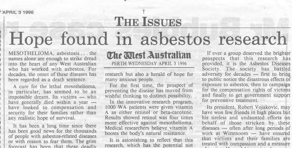 [columnize] Australia has the highest incidence of asbestos cancers in the world with more than 10,000 people dying since the 1980’s1. With the location of the closed Wittenoom Asbestos mine in Western Australia, and therefore many asbestos cancer sufferers now in Perth, Bruce has conducted a special medical clinic to care for asbestos victims and […]